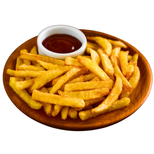 “গরম তেলে ভাজা লম্বা আলুর স্টিক, বাইরে একদম মচমচে আর ভেতরে নরম—ফ্রেঞ্চ ফ্রাই মানেই সবার পছন্দের ক্রিসপি স্ন্যাক্স, কেচাপ বা মায়োর সঙ্গে একেবারে পারফেক্ট।”